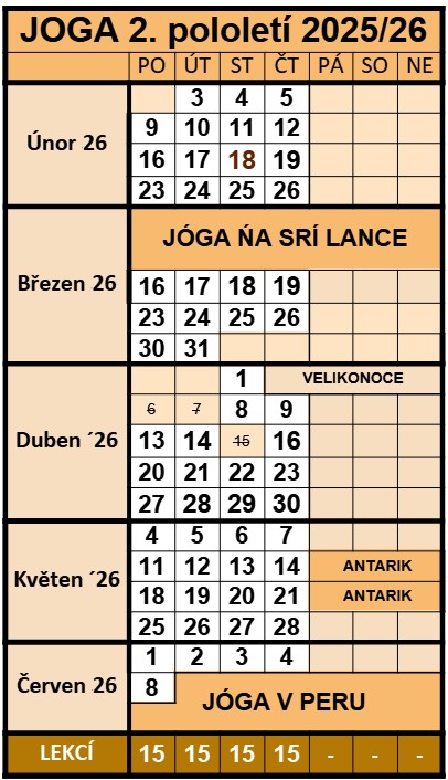 | Rozvrh lekcí jógy do 30. června 2016 | |||