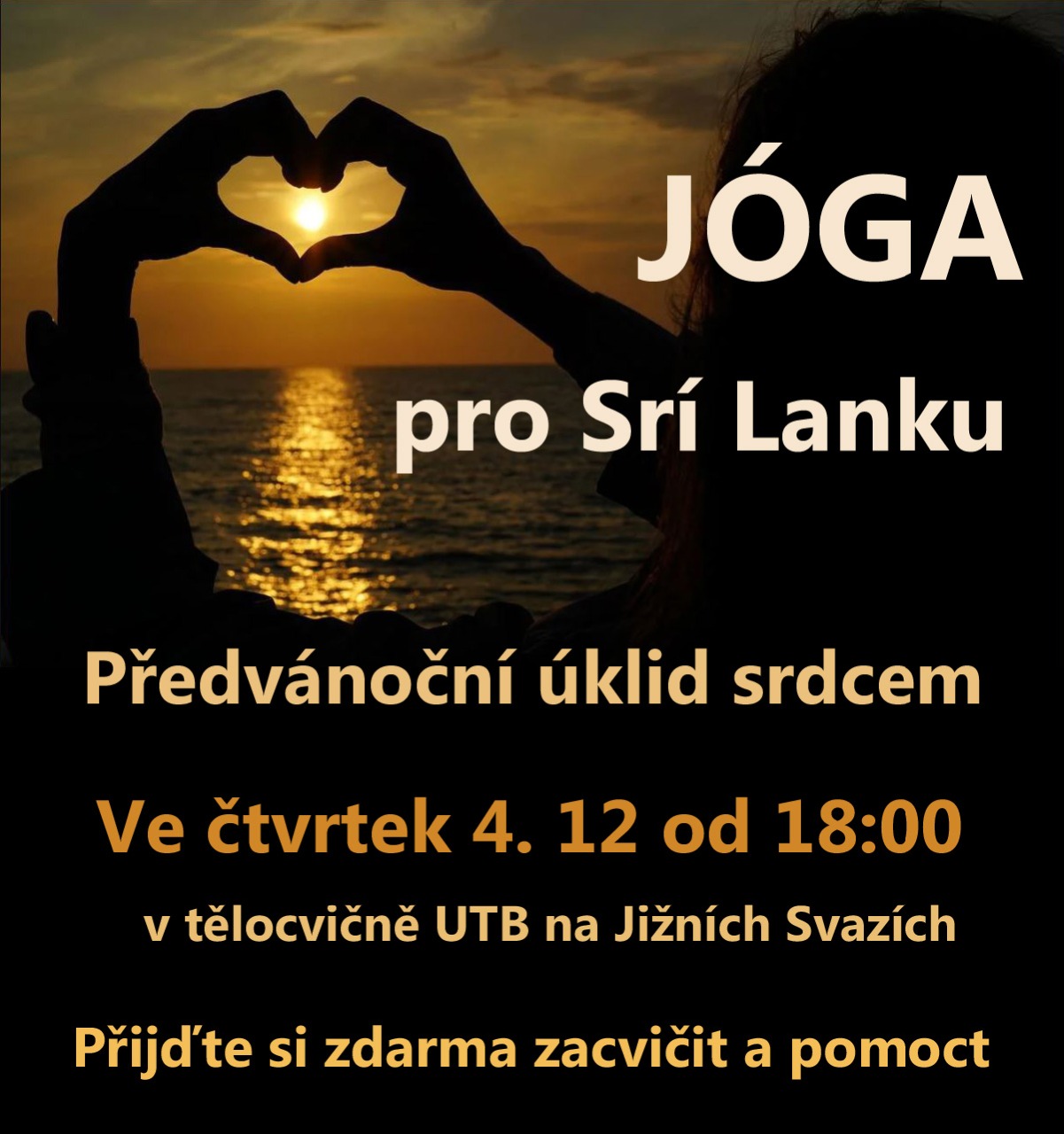 Ve čtvrtek 4. 12. v 18:00, proběhne na UTB na Jižních Svazích speciální lekce jógy zdarma spojená se sbírkou materiální pomoci pro lidi na Srí Lance.